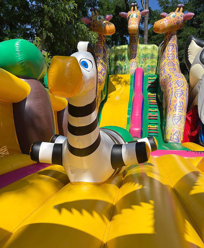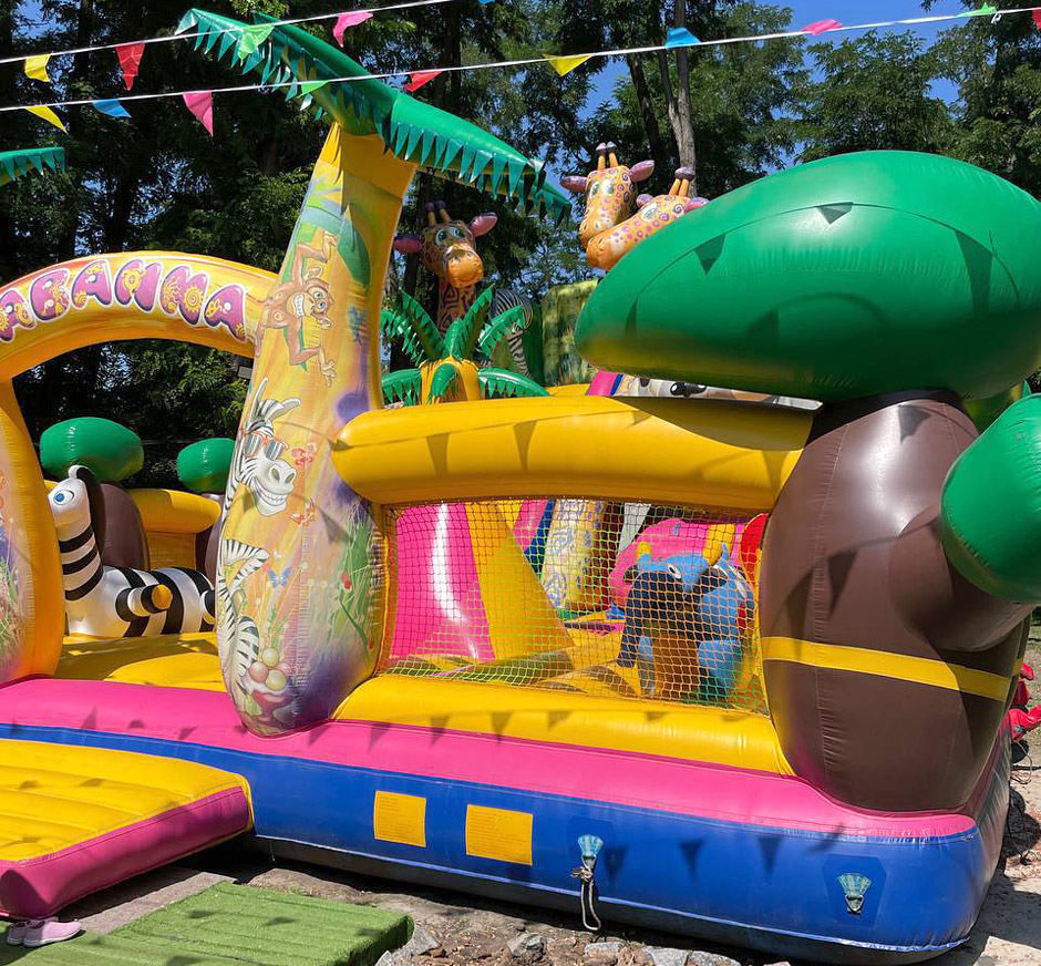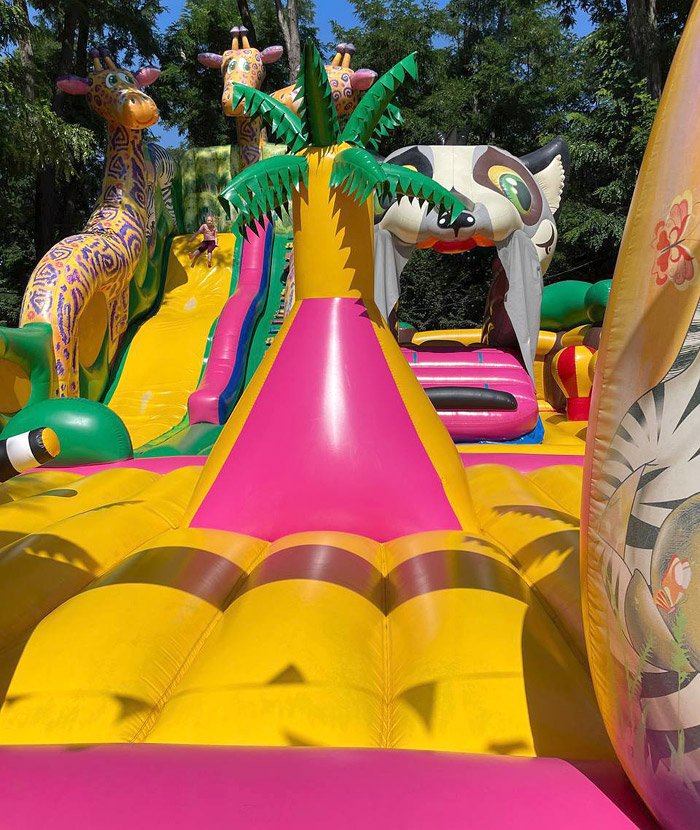 Пропонуємо до продажу яскравий і міцний надувний батут розміром 10×20 метрів.