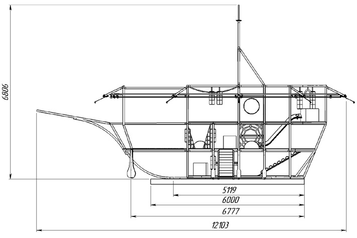 Детская игровая комната "Корабль". Размеры: 8 x 6 x 3 м. Игровая комната может быть выполнена как с крышей, так и без крыши.